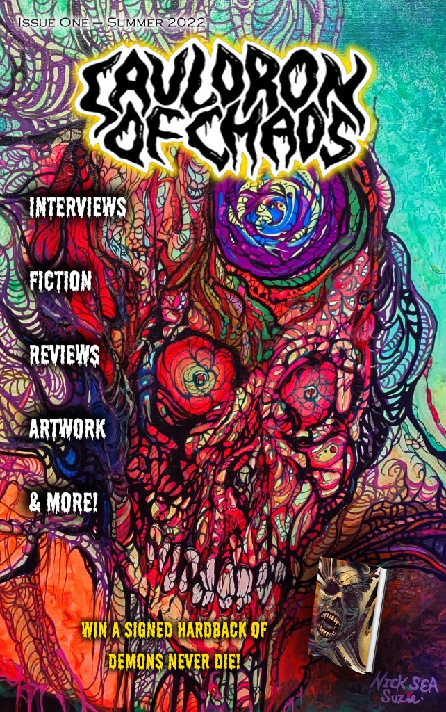 This week sees the release of Issue 3 of our quarterly magazine, Cauldron of Chaos. This issue focuses on Women in Horror and includes a selection of stories, artist features, book and film reviews, interviews with actors, filmmakers, writers and publishers, as well as competitions, all beautifully illustrated by David Paul Harris.